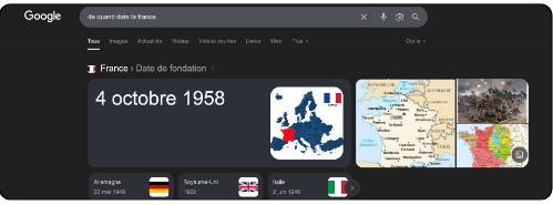 Ainsi, c'est le début de la Cinquième République qui marque la naissance de la France selon le géant de Mountain View. On peut en rire. Mais en vérité cette question n'appelle aucune réponse évidente. Certains considèrent que c'est le règne de Clovis qui marque la naissance de notre pays. D'autres situent cette origine au règne d'Hugues Capet ou à l'épopée de Jeanne d'Arc.