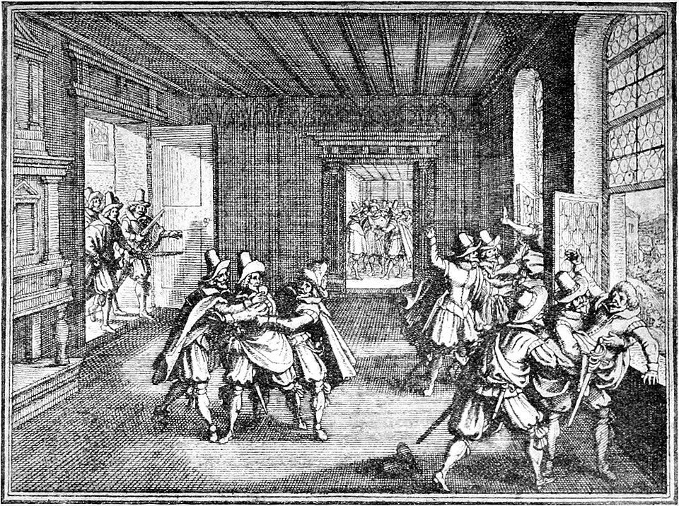 Le 23 mai 1618 à Prague, deux gouverneurs catholiques, représentants de l’empereur, sont défenestrés par des nobles protestants. Le tas de fumier qui amortit leur chute leur sauve la vie mais pas la paix : la guerre vient de trouver son prétexte. Cette étincelle, par le jeu des alliances principalement autour de la rivalité entre les Habsbourg et leurs opposants, déclenche le feu sur le territoire du Saint-Empire.